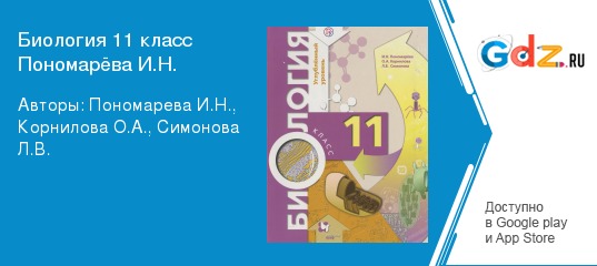 ГДЗ по биологии 11 класс автор Понамарёва И.Н. — это сборник решений задач и заданий по биологии. Он содержит ответы на все вопросы, которые могут возникнуть у ученика при изучении предмета. Пособие полностью соответствует всем требованиям федерального государственного образовательного стандарта и учебной программы полного среднего образования.